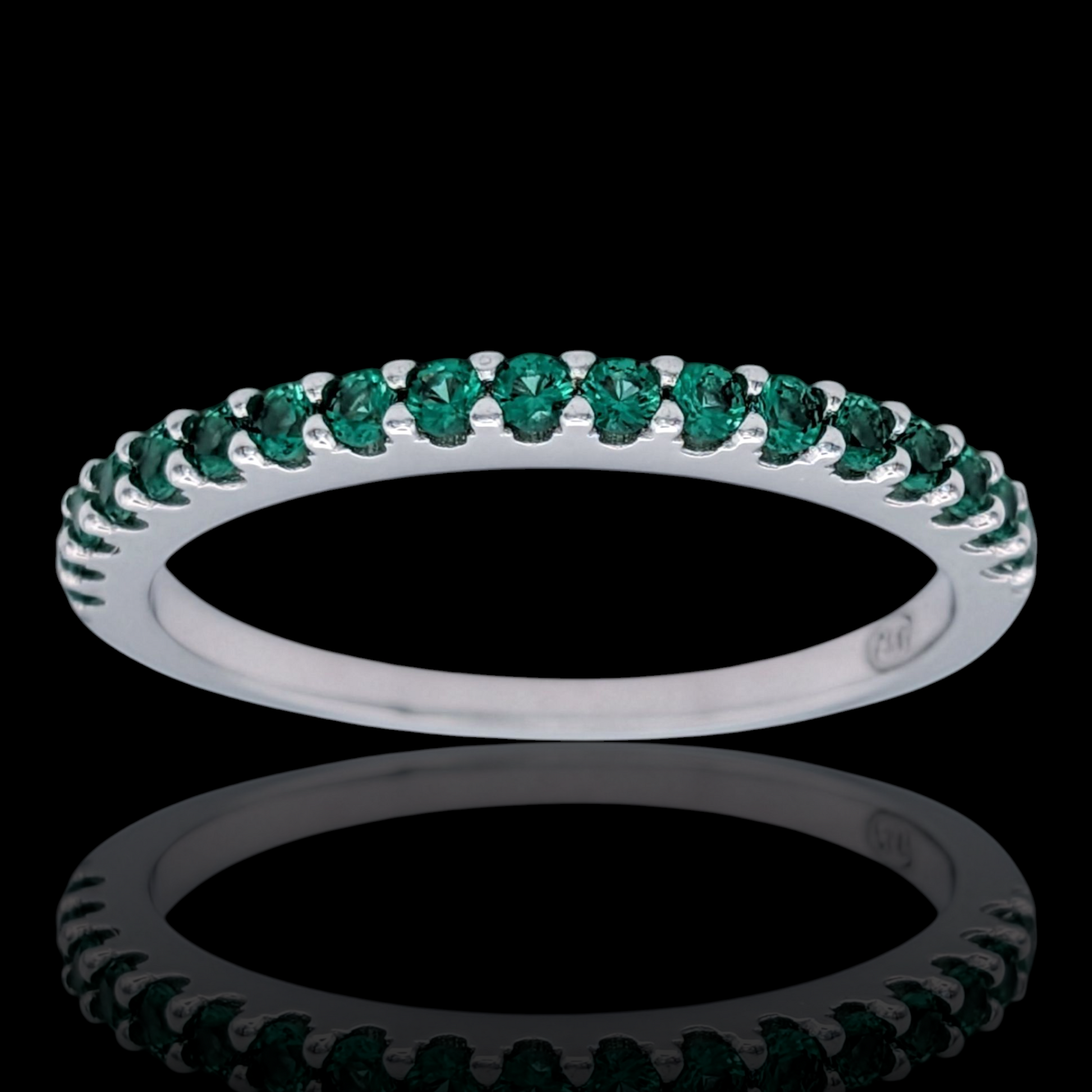Bague demi-alliance en argent 925 rhodié et pierres vertes en verre