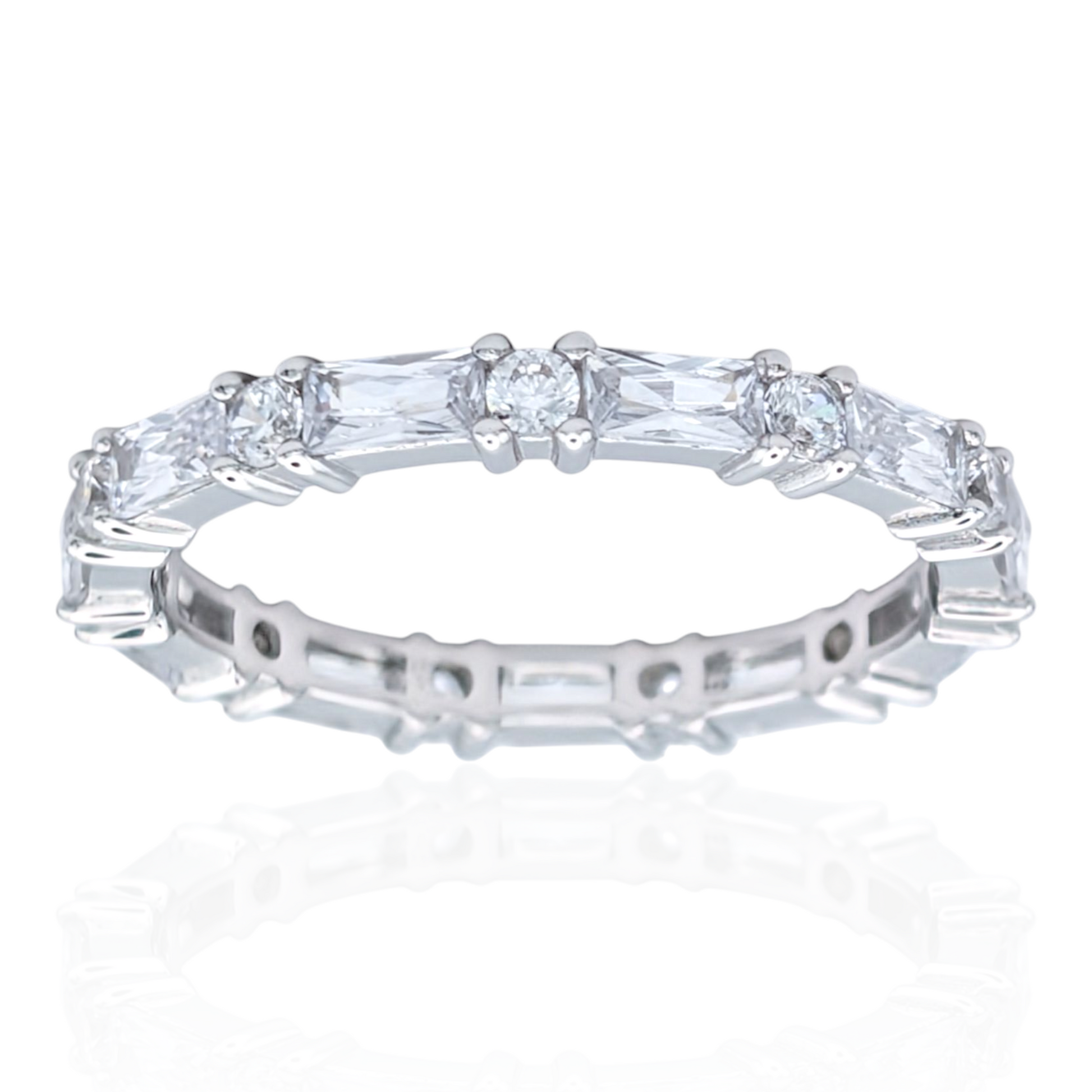 Bague Éternité Argent 925 Rhodié Oxydes de Zirconium Baguette et Ronds