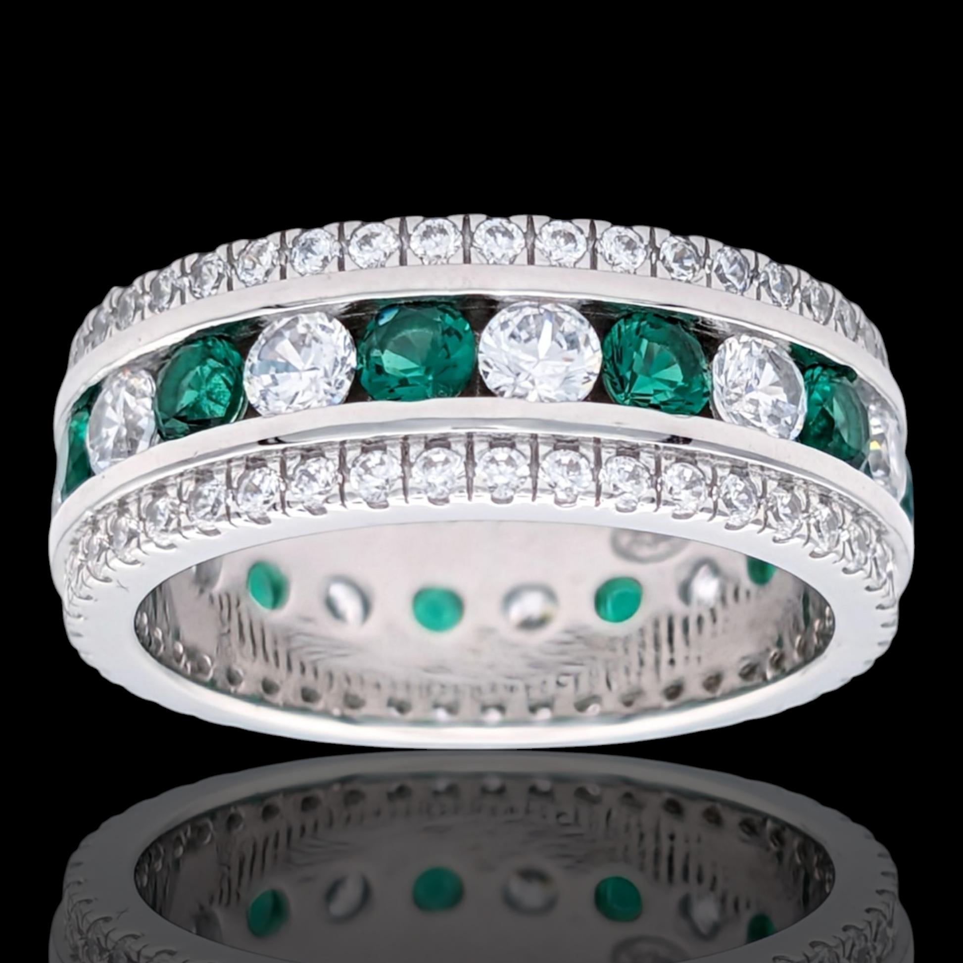 Bague Éternité Argent 925 Rhodié Pierres Vertes et Oxydes de Zirconium