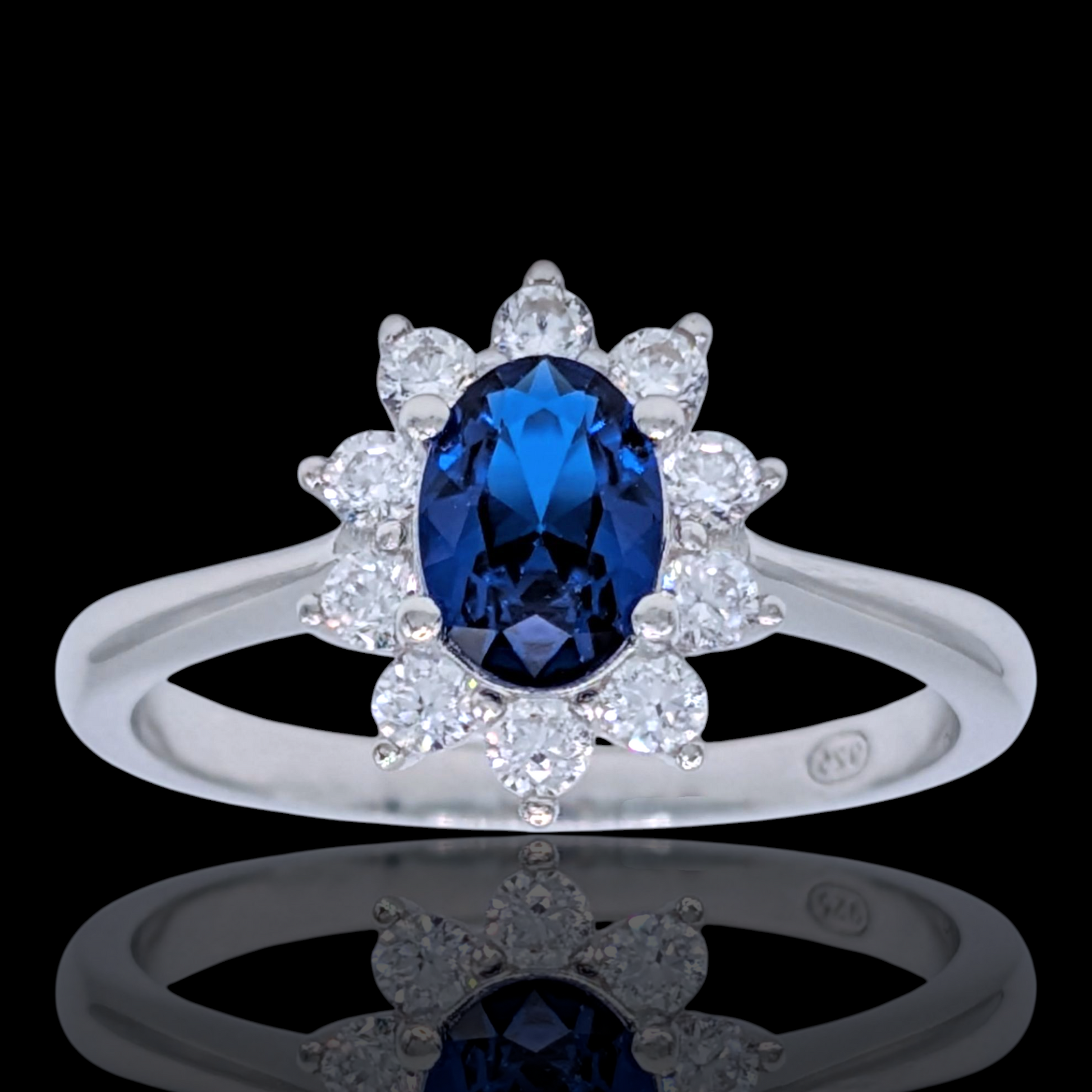 Inspirée des designs royaux, cette magnifique bague en argent 925 rhodié est la quintessence du luxe intemporel. Elle présente une pierre centrale ovale de corindon synthétique bleu profond, qui capte la lumière avec une intensité hypnotique. Cette gemme est entourée d'un halo de dix oxydes de zirconium brillants, créant un effet floral spectaculaire qui maximise l'éclat de l'ensemble. L'utilisation d'argent rhodié assure une finition miroir durable et une résistance supérieure au ternissement. Parfaite comme bague de fiançailles, cadeau de luxe ou accessoire pour une soirée élégante, elle est un véritable statement piece. Offrez-vous l'élégance et la prestance d'un bijou de haute joaillerie à un prix accessible.