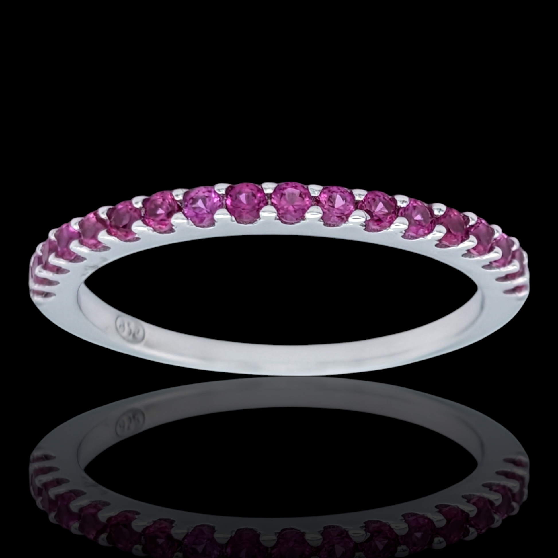 Bague demi-alliance en argent 925 rhodié et corindons synthétiques rouges