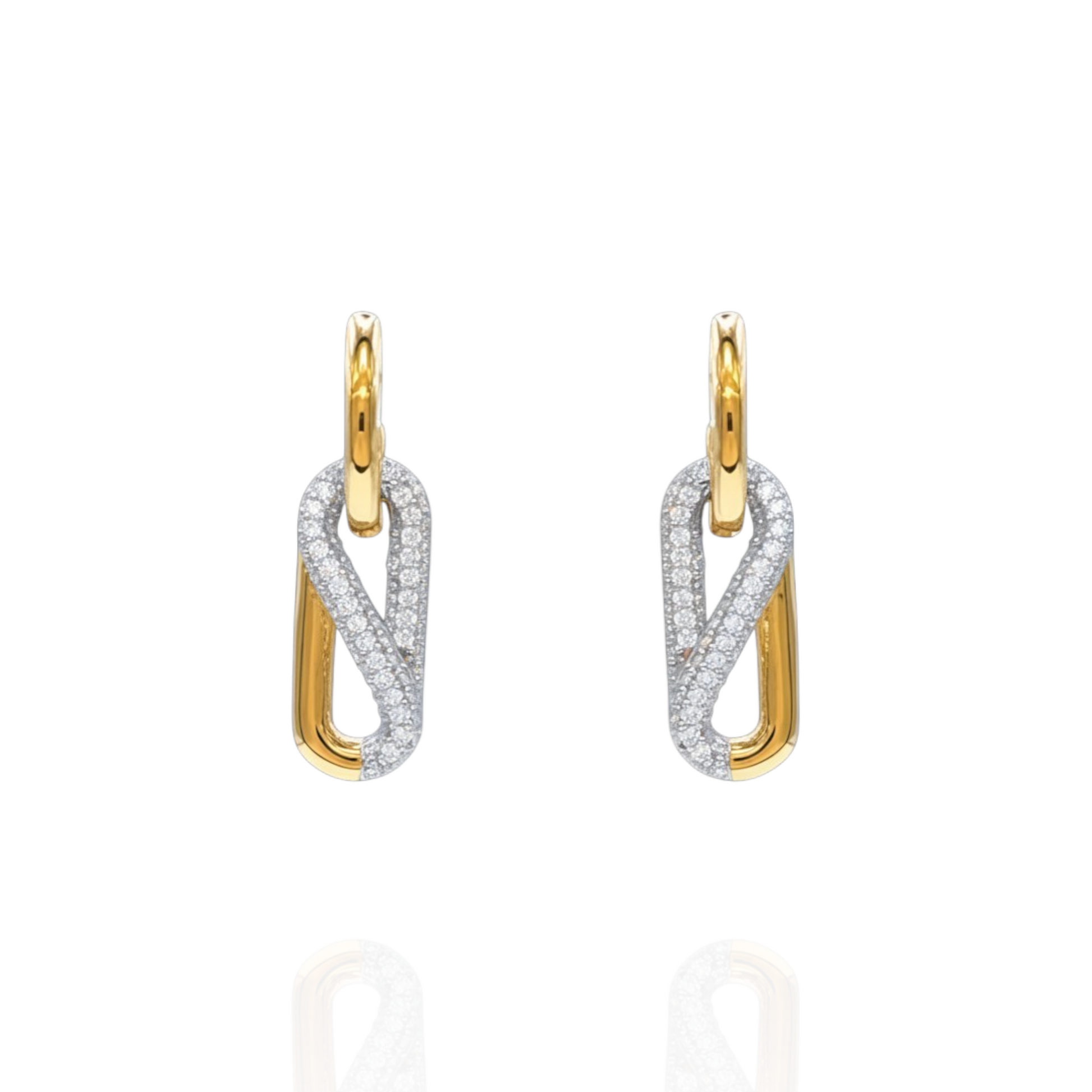 Boucles d’oreilles pendantes maillons Or 750 et oxydes de zirconium