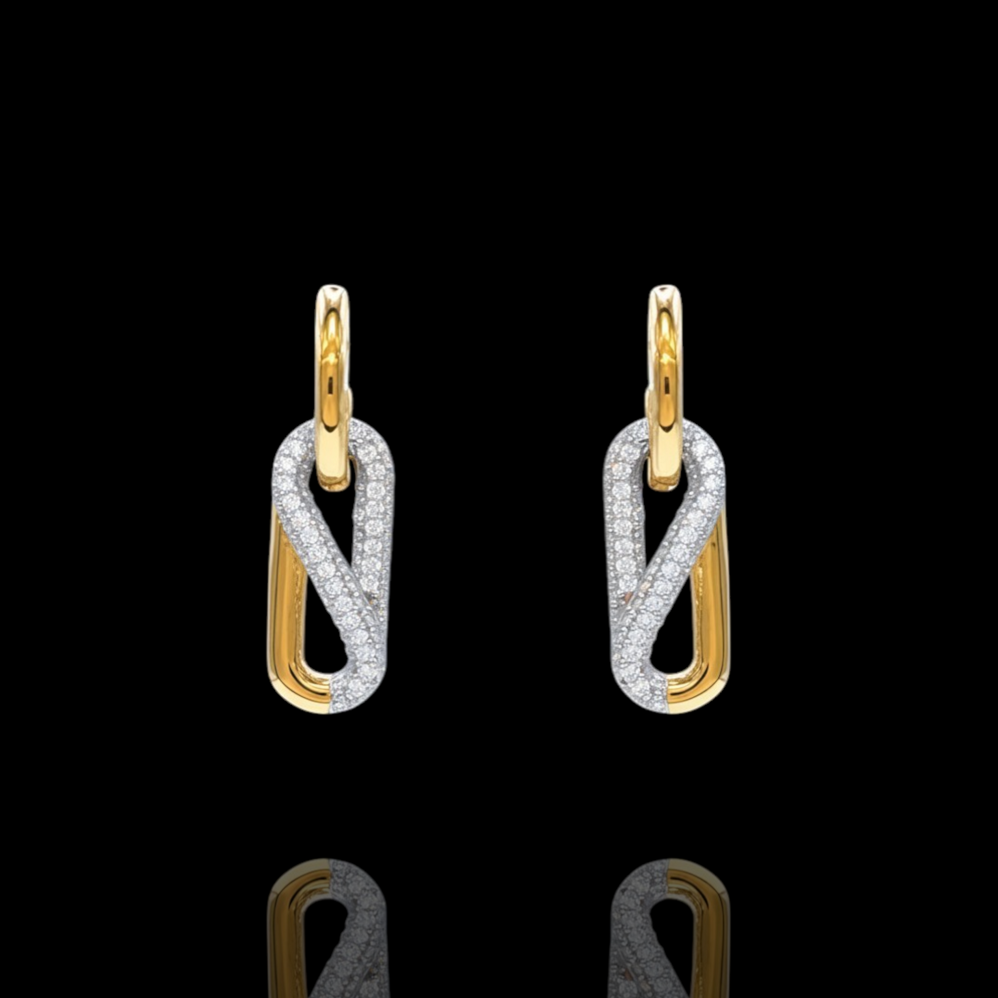 Sublimez votre visage avec ces éblouissantes boucles d’oreilles pendantes en Or 750 (18 carats). Ce bijou d'exception présente un design moderne et graphique, composé de deux maillons entrelacés : l'un en or massif lisse et brillant, l'autre délicatement pavé d'oxydes de zirconium blancs éclatants. Le contraste entre le métal précieux 18 carats et la brillance intense des pierres offre un rendu luxueux et intemporel. Idéales pour une soirée élégante, un mariage, ou pour sublimer votre style au quotidien, ces boucles d’oreilles incarnent le raffinement pur. Offrez-vous l'éclat incomparable de la joaillerie haut de gamme avec cette pièce incontournable.