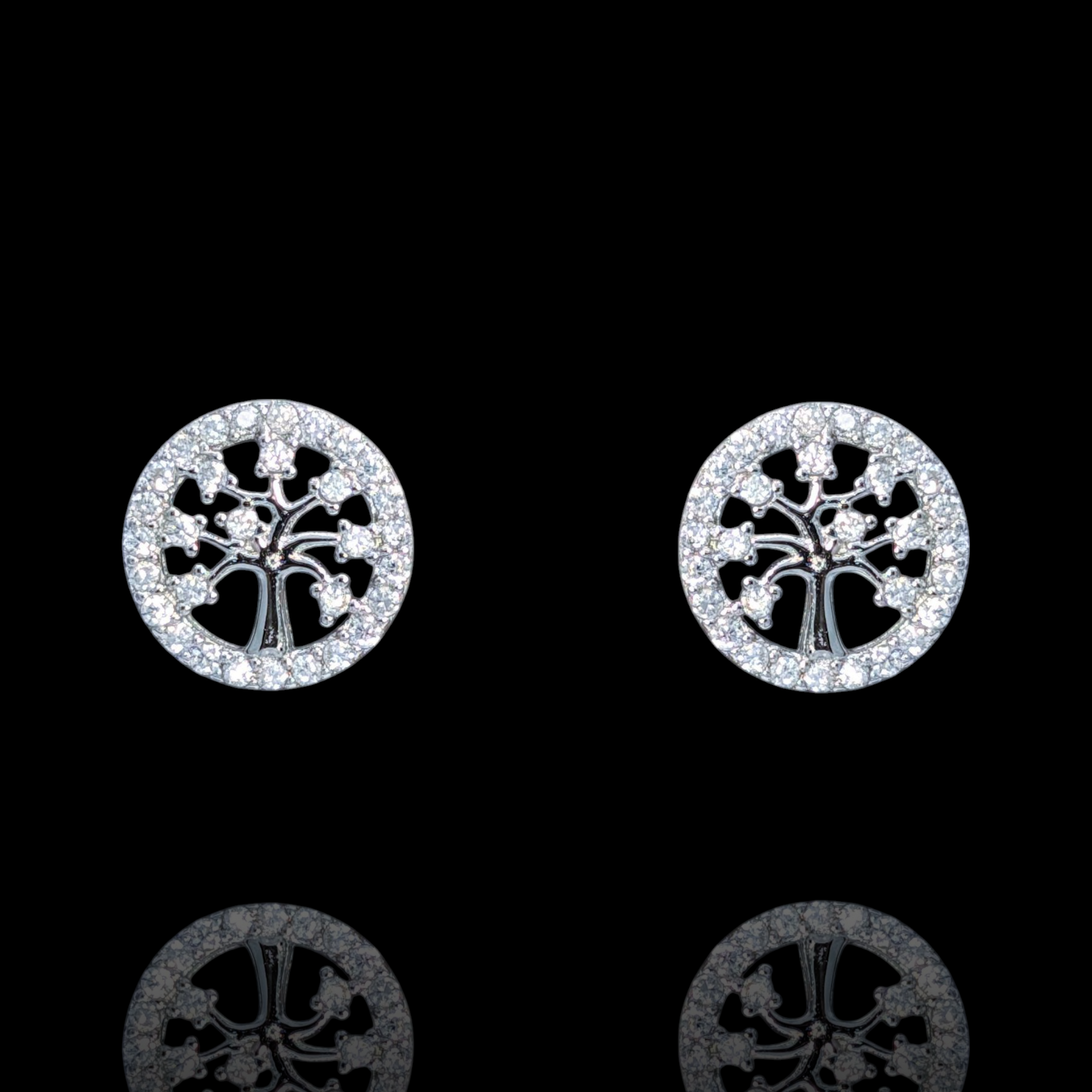 Boucles d'oreilles Arbre de Vie argent 925 rhodié et oxydes de zirconium blancs