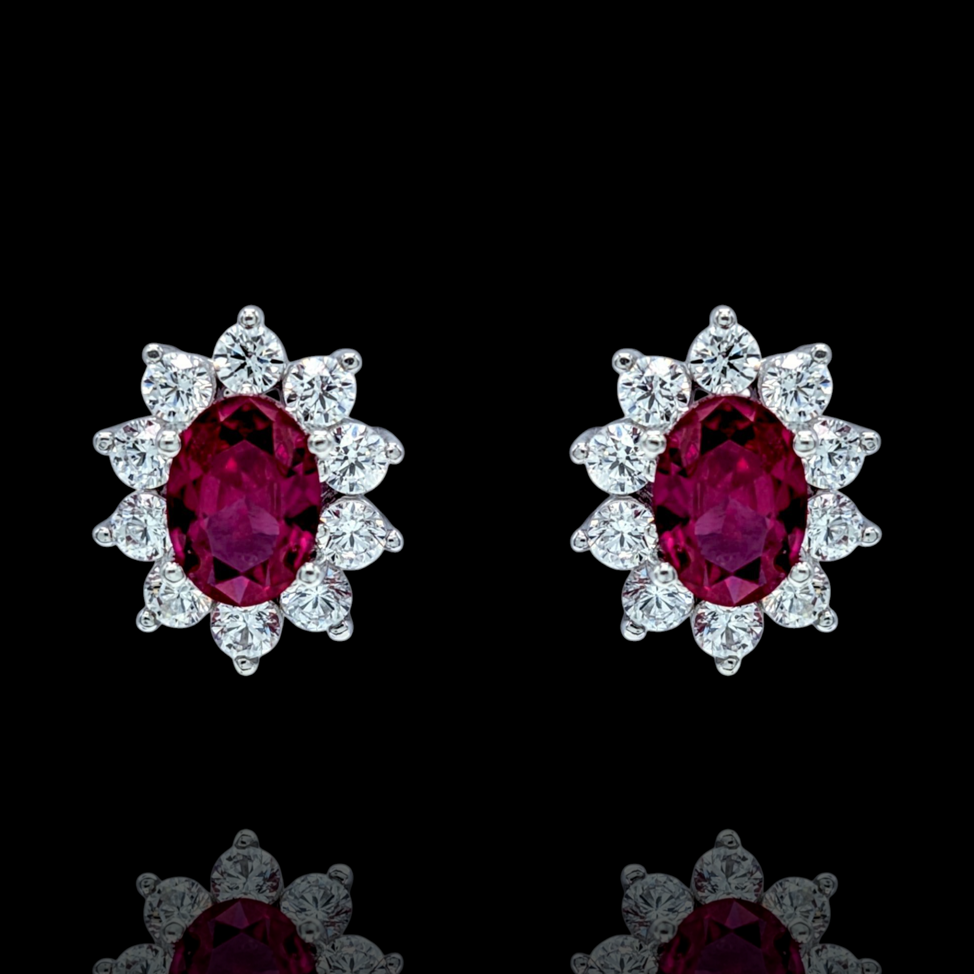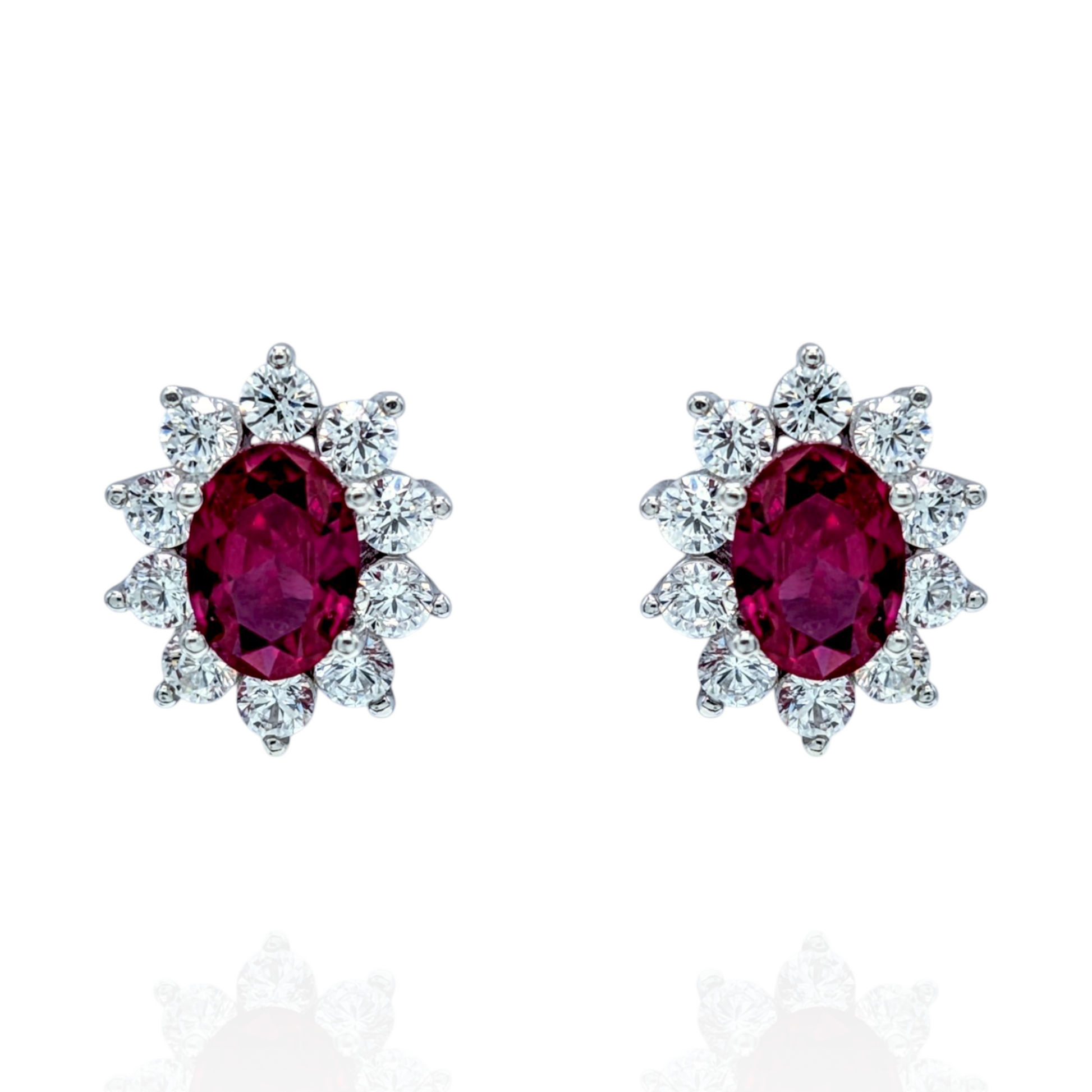 Boucles d'Oreilles Argent 925 Rhodié Corindon Rouge Oxyde de zirconium