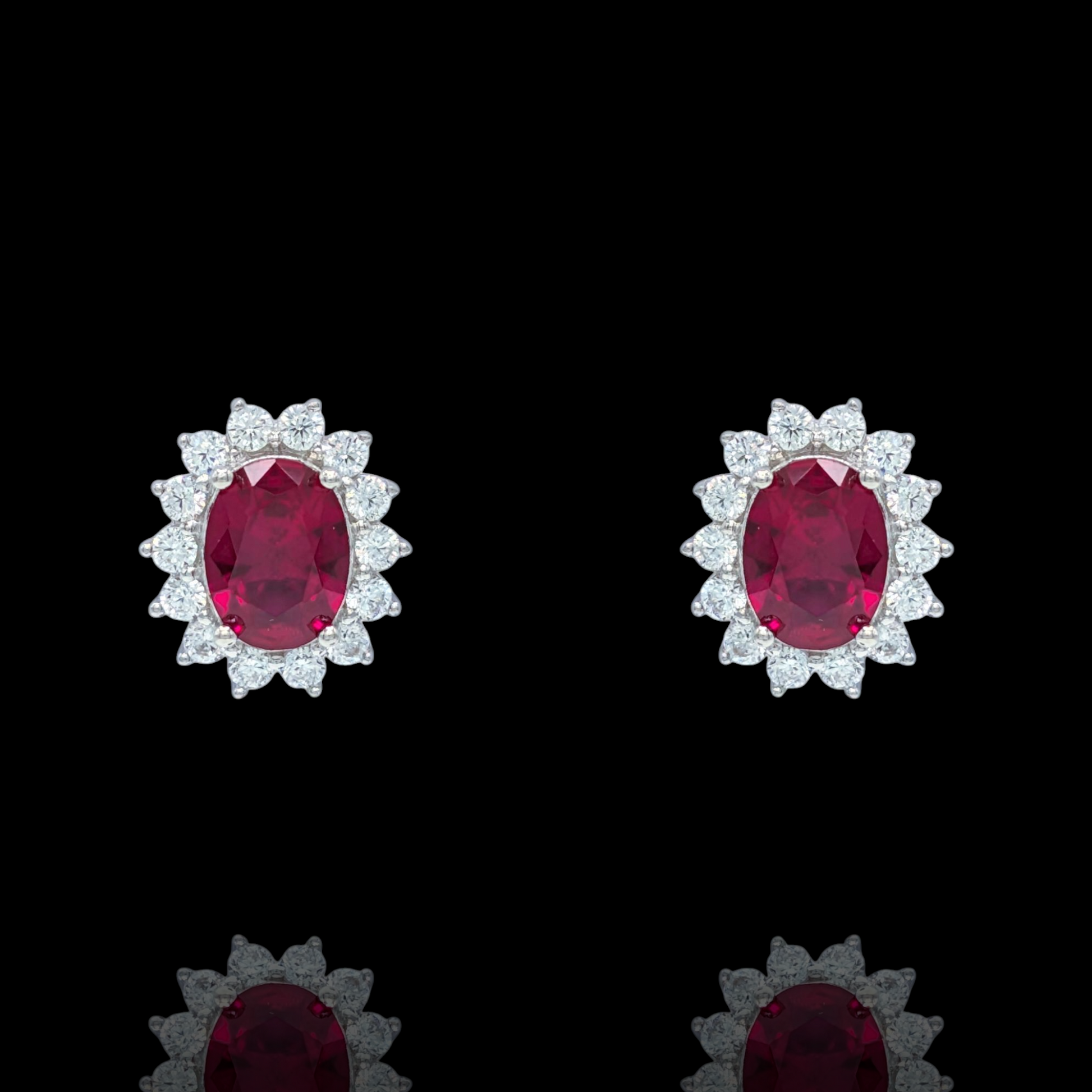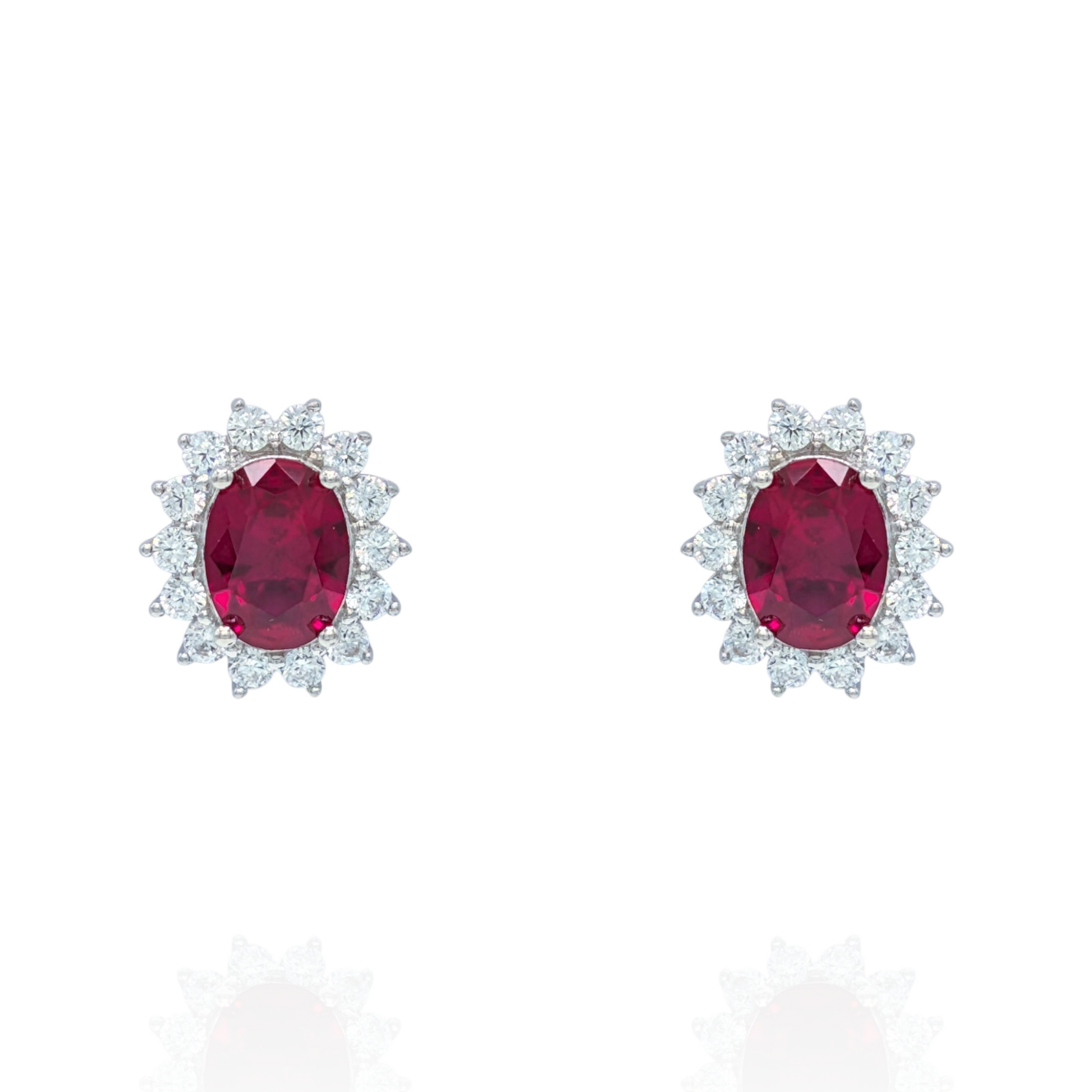 Boucles d'Oreilles Argent 925 Rhodié Corindon Rouge Serti Oxyde Zirconium