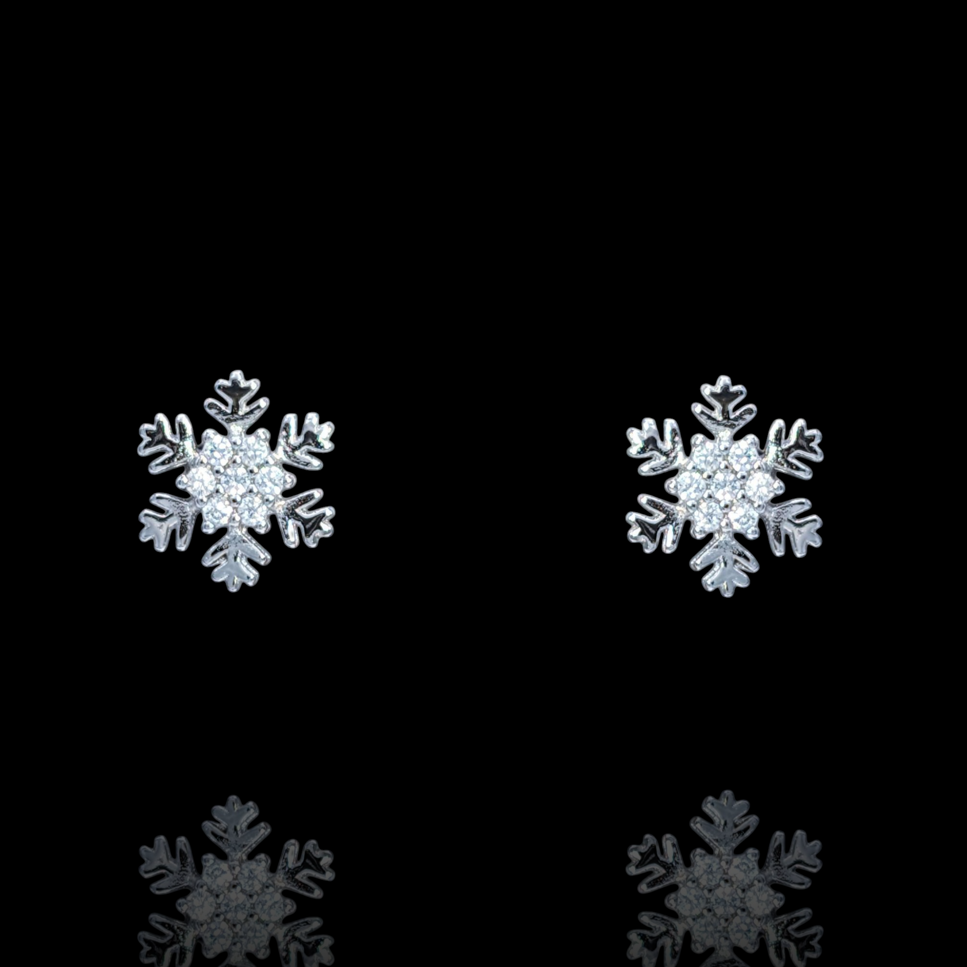Boucles d'Oreilles Argent 925 Rhodié Flocons de Neige Oxydes Zirconium