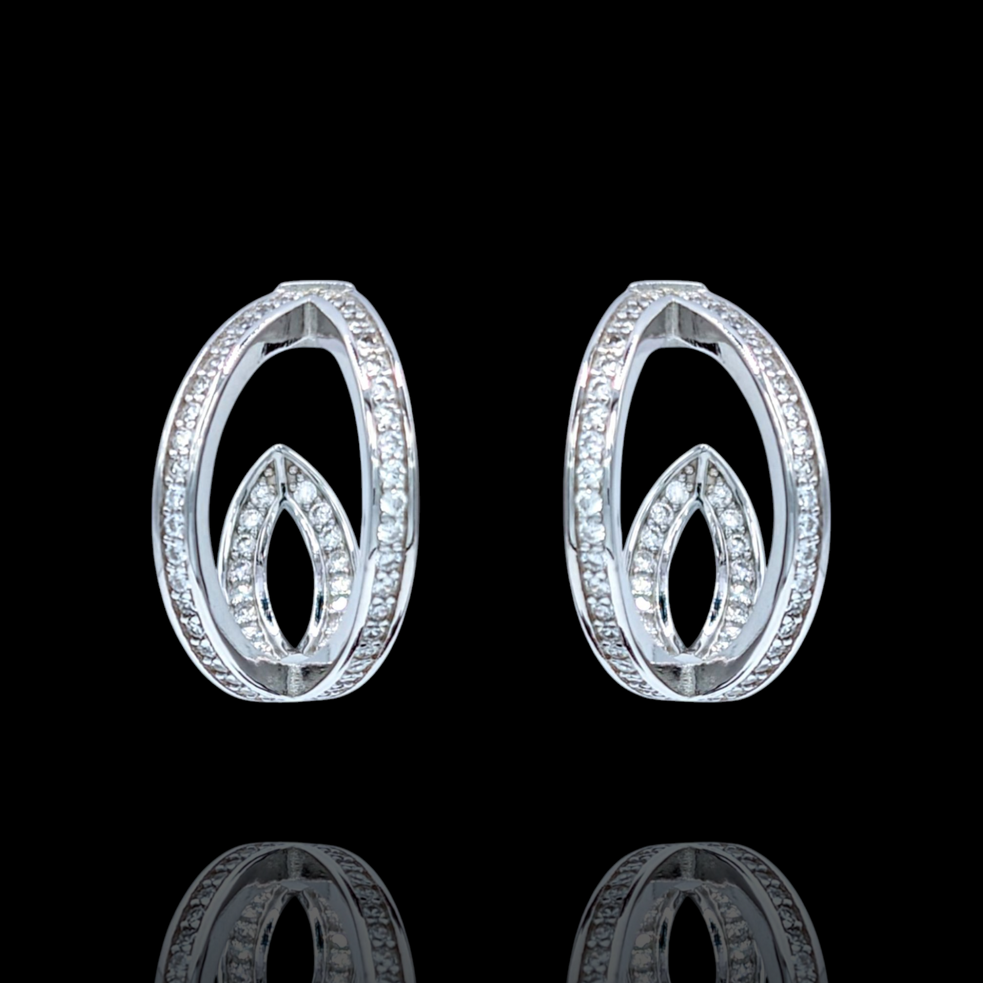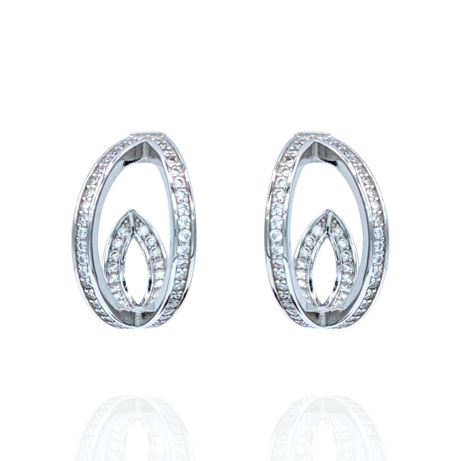Boucles d'Oreilles Argent 925 Rhodié Oxydes de Zirconium Design Ovale
