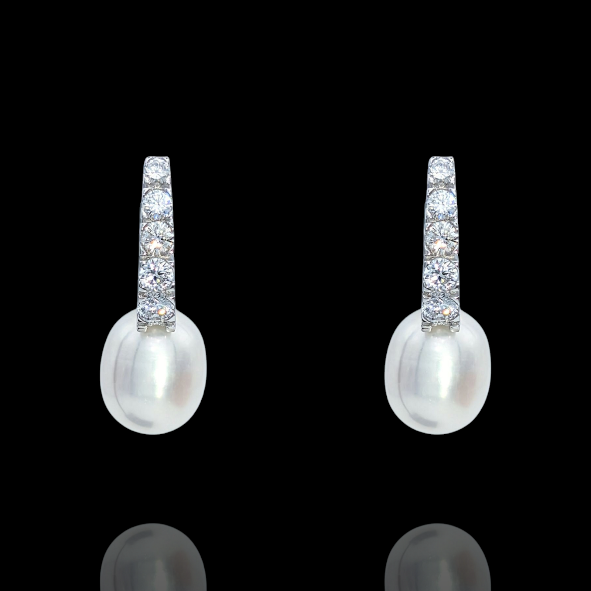 Boucles d'Oreilles Argent 925 Rhodié Perles Oxydes Zirconium