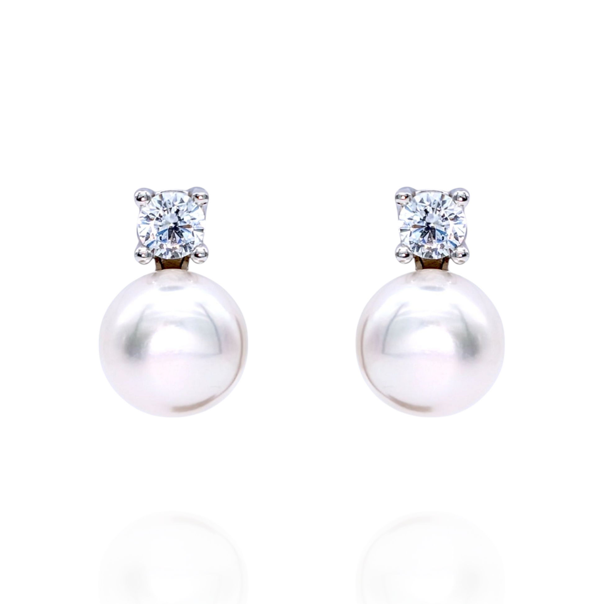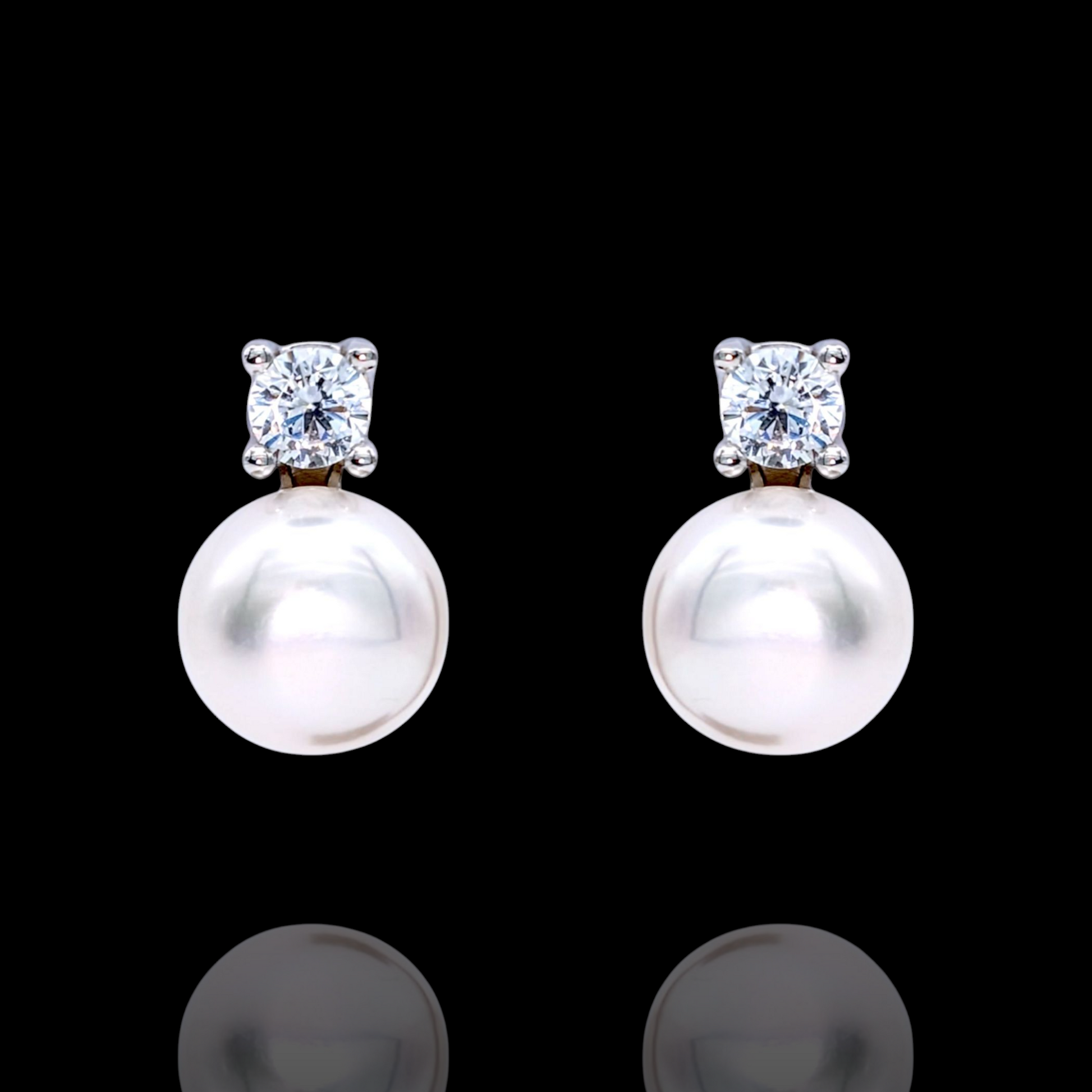 Boucles d'Oreilles Argent 925 Rhodié Perles Oxydes Zirconium