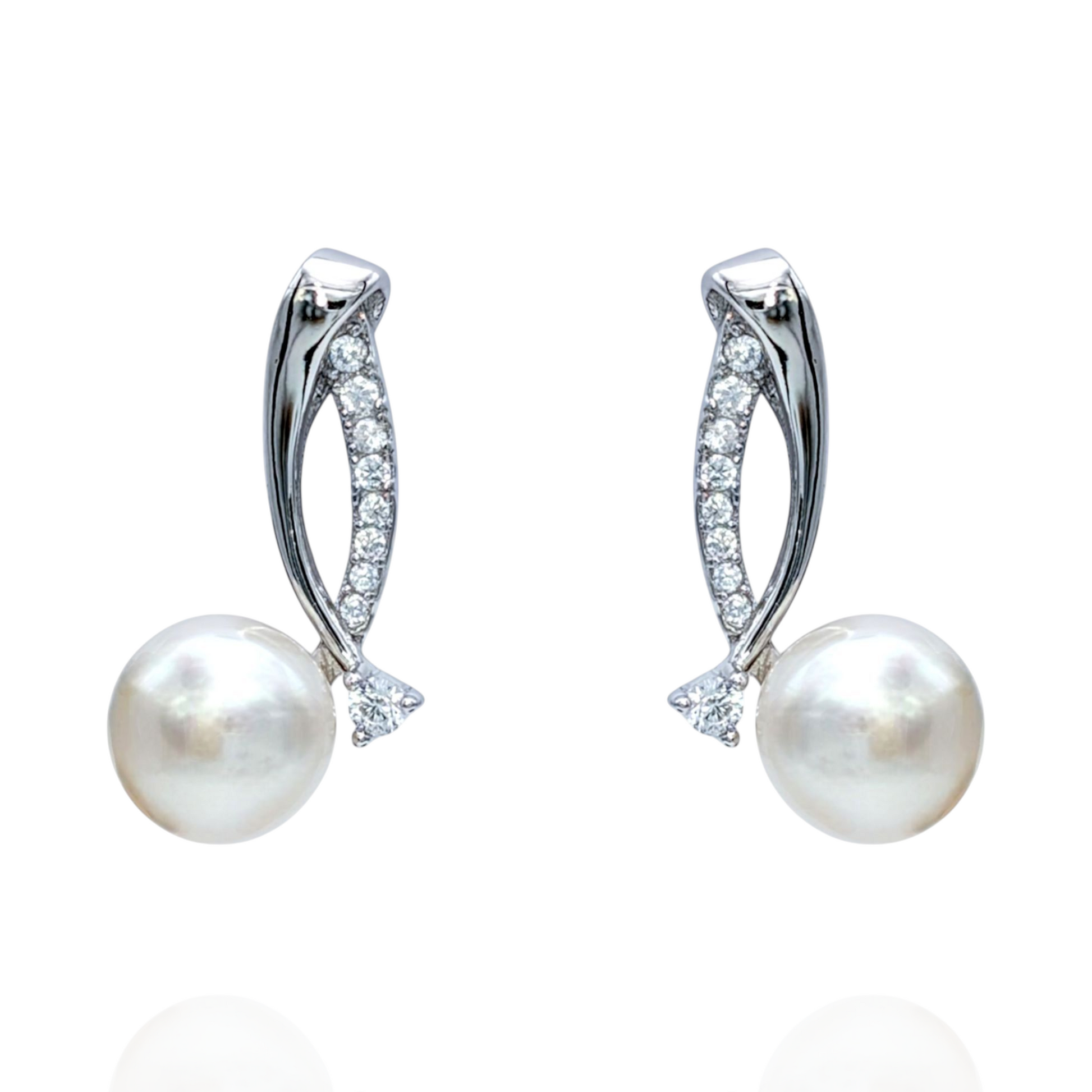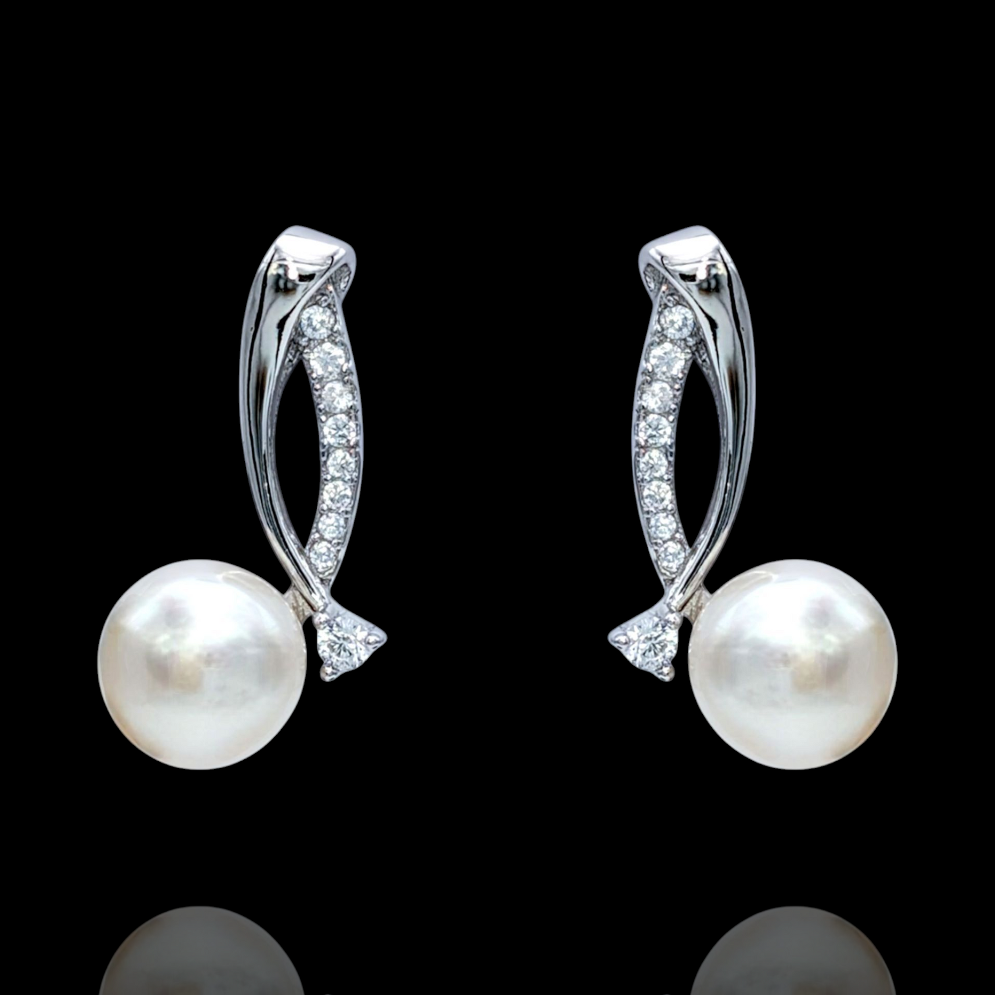 Boucles d'Oreilles Argent 925 Rhodié Perles Oxydes Zirconium