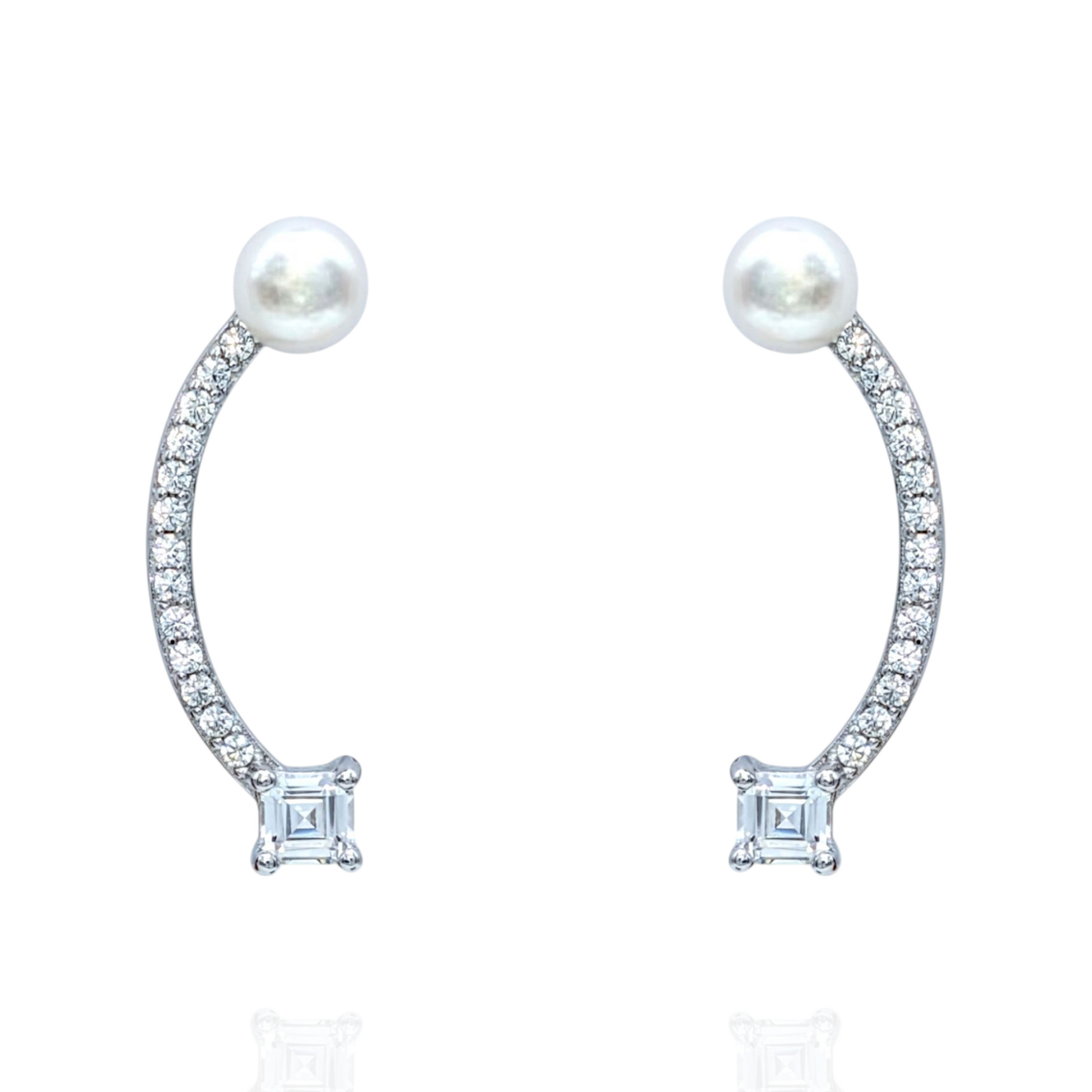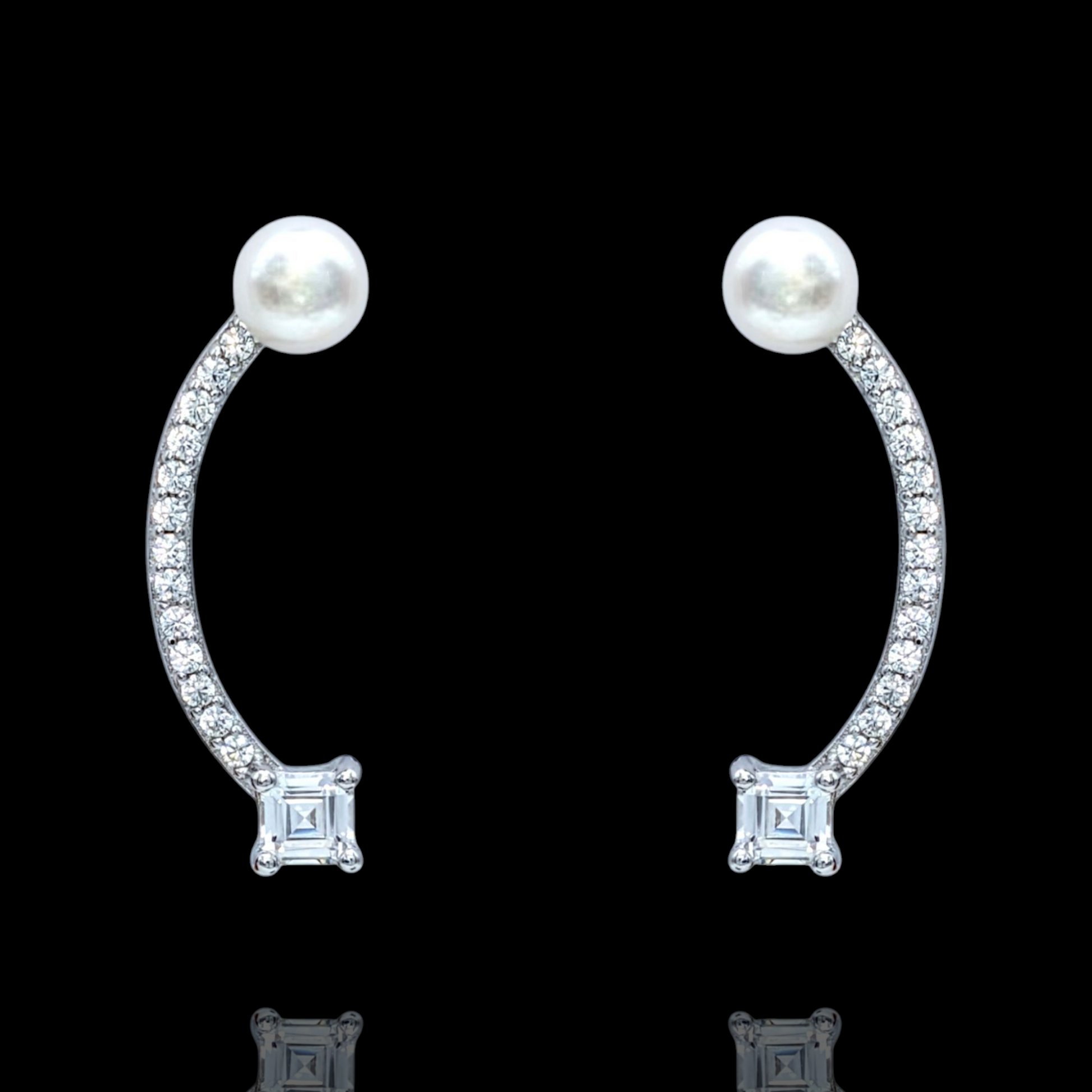 Adoptez un style moderne et raffiné avec ces boucles d'oreilles en argent 925 rhodié, dotées d'un fermoir poussette pour un confort optimal. Leur design unique dessine une élégante courbe pavée d'oxydes de zirconium blancs étincelants, surmontée d'une perle délicate et ornée à son extrémité inférieure d'un oxyde de zirconium de taille princesse pour une touche d'éclat géométrique. L'argent 925 rhodié garantit une brillance durable et une résistance exceptionnelle au ternissement, assurant à ces bijoux une allure précieuse. Idéales pour toutes les occasions, du bureau aux sorties mondaines, ces boucles d'oreilles apporteront une touche de sophistication contemporaine à votre look. C'est le cadeau parfait pour celles qui apprécient les bijoux au design original et élégant.