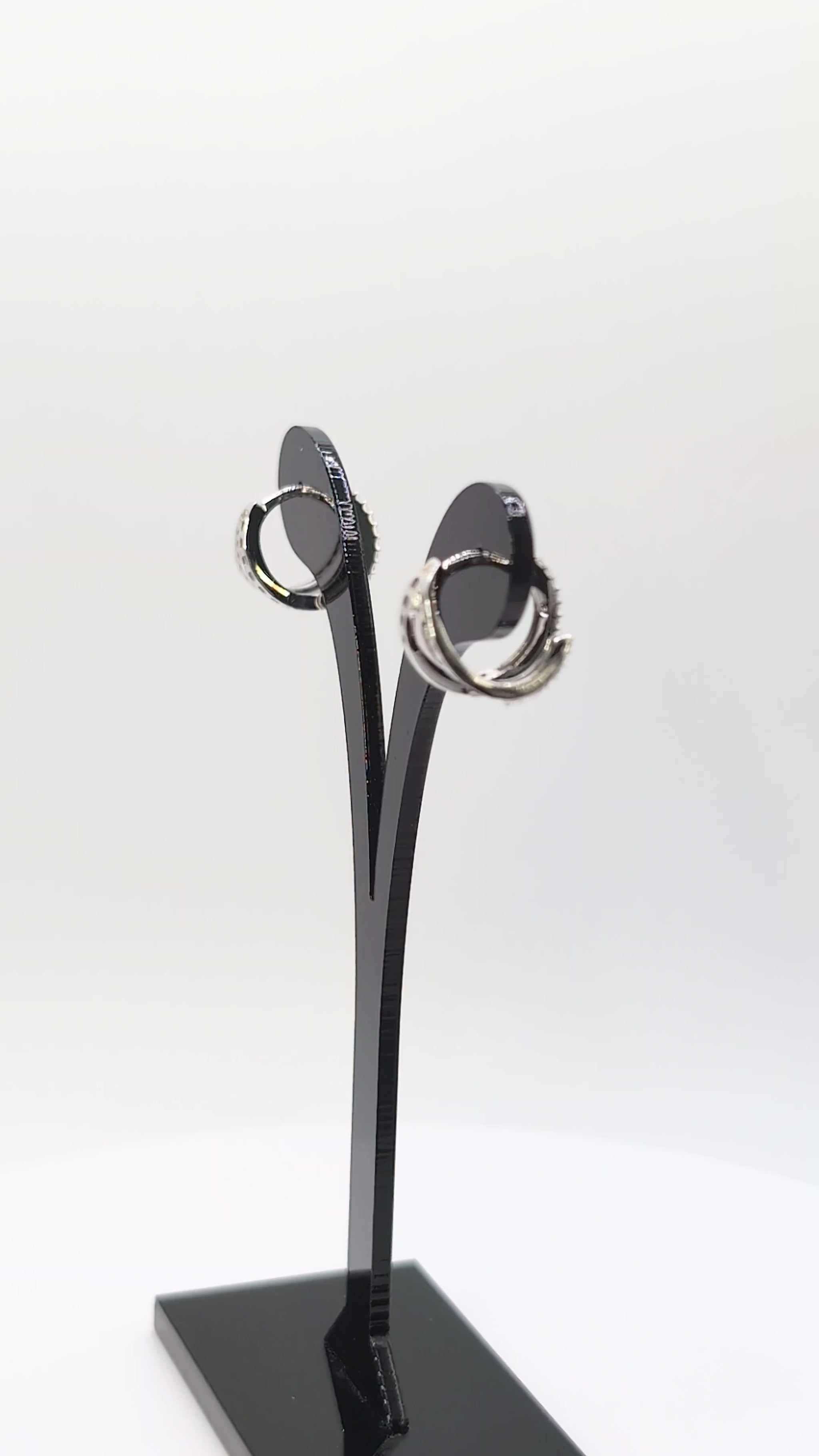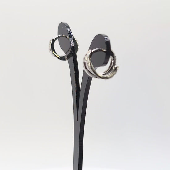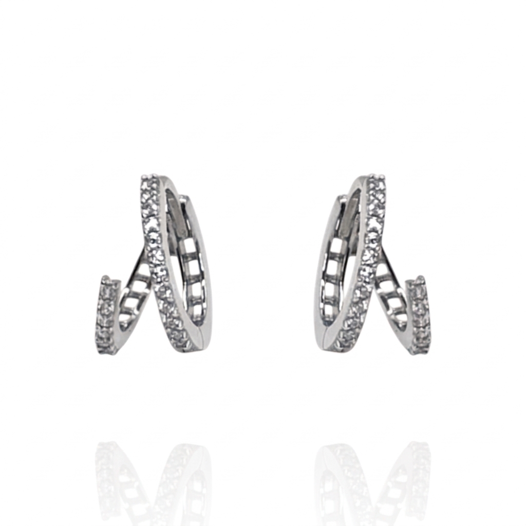 Boucles d'oreilles créoles doubles en Or Blanc 750 et oxydes de zirconium