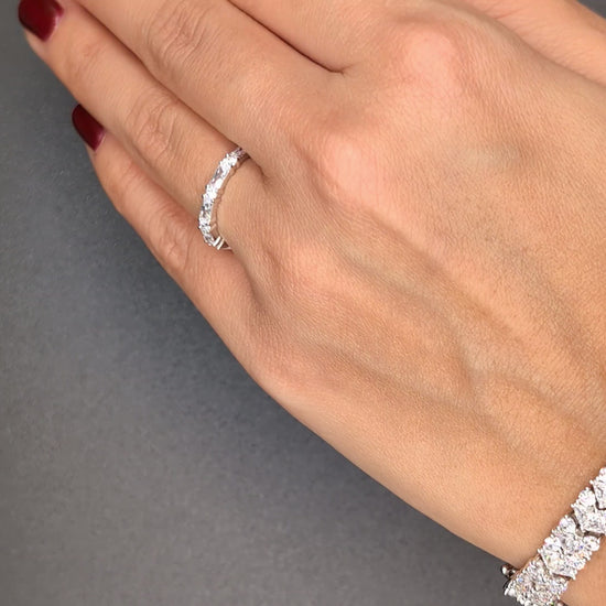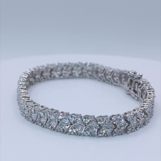 Affirmez un style audacieux et luxueux avec ce spectaculaire bracelet en argent 925 rhodié. Le revêtement en rhodium assure une brillance éclatante et une durabilité exceptionnelle, rivalisant avec les métaux les plus précieux. Ce modèle unique présente une double rangée de pierres blanches : des oxydes de zirconium de taille ronde alternent avec des pierres de taille triangle, créant un motif en X saisissant de lumière. La densité du pavage garantit un scintillement maximal à chaque mouvement. Ce bracelet est parfait pour les amateurs de joaillerie imposante et moderne. Idéal pour une soirée chic, un événement de prestige ou comme un cadeau d'exception pour marquer une étape importante. C'est l'accessoire indispensable pour un look glamour et sophistiqué.