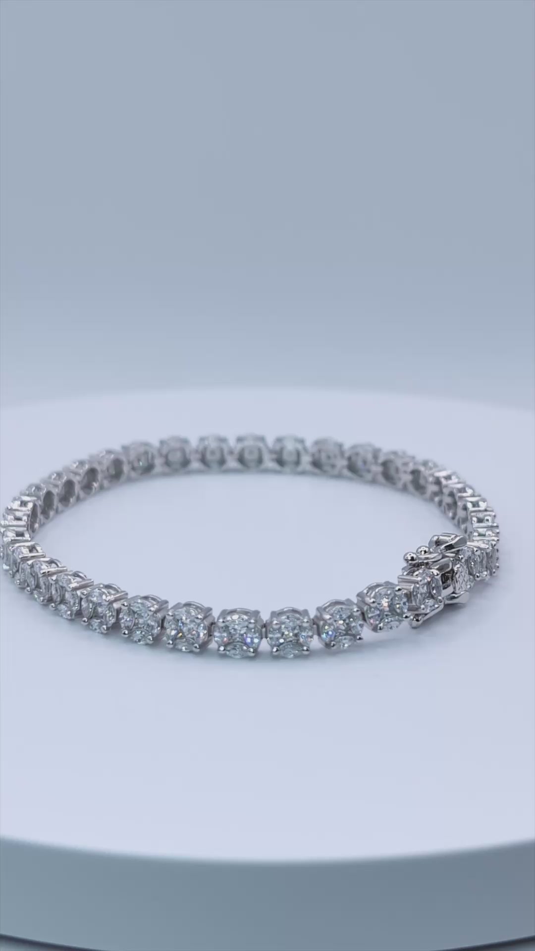 Bracelet Tennis Argent 925 Rhodié Oxyde de Zirconium Fleur (19,5cm)