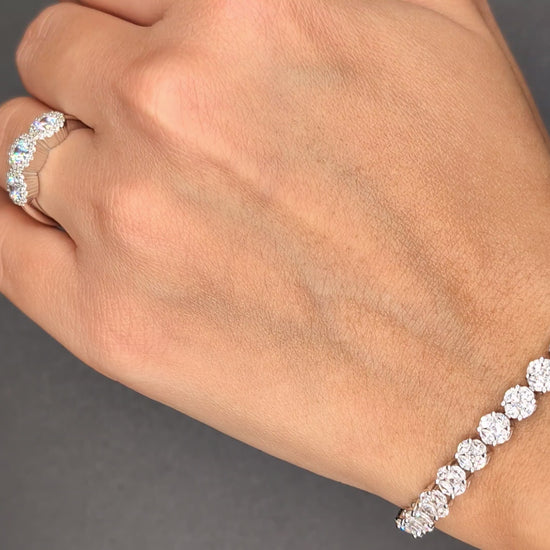 Succombez à l'éclat hypnotique de ce somptueux bracelet en argent 925 rhodié. Le rhodiage confère à ce bijou une brillance durable et une protection maximale, imitant l'aspect du platine. Ce design tennis revisité se distingue par des maillons formés de grappes d'oxydes de zirconium qui s'assemblent pour créer un magnifique effet "fleur" ou "diamant cluster". La disposition des pierres blanches maximise la lumière, offrant un scintillement supérieur digne des plus belles parures de joaillerie. Ce bracelet est le choix idéal pour un mariage, des fiançailles ou pour un cadeau de luxe marquant une occasion mémorable. Son élégance intemporelle et sa conception raffinée en font un accessoire parfait pour toutes vos soirées et événements spéciaux, garantissant un style glamour et sophistiqué.