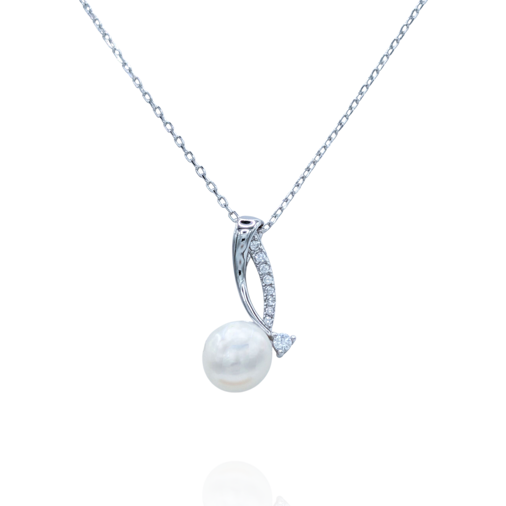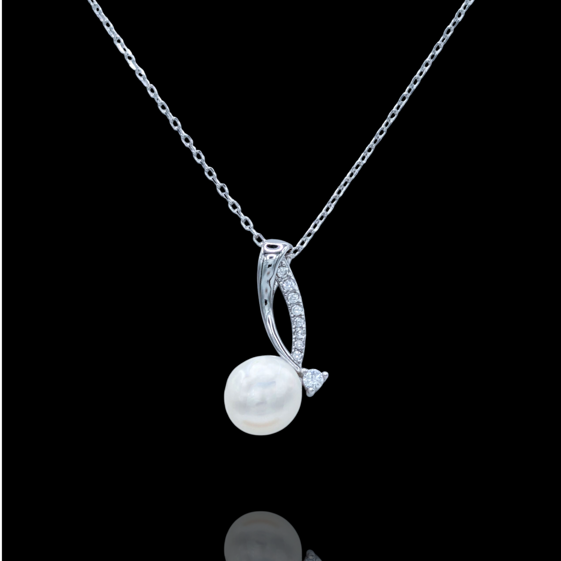 Collier Pendentif Argent 925 Rhodié Perle Naturelle et Zirconium Moderne