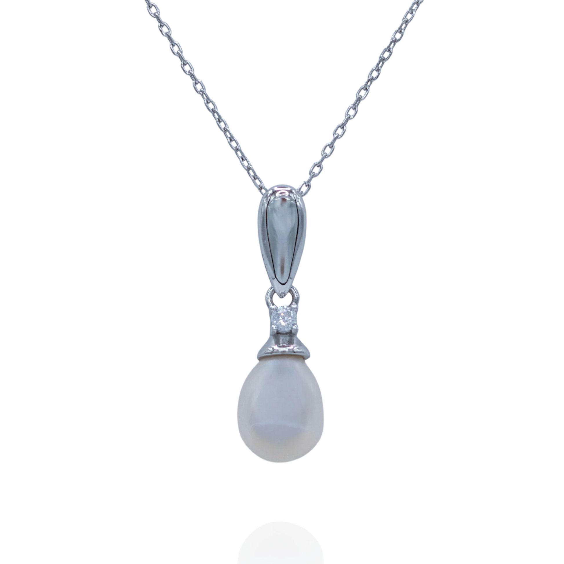 Collier Pendentif Argent 925 Rhodié Perle Sertie Oxyde Zirconium