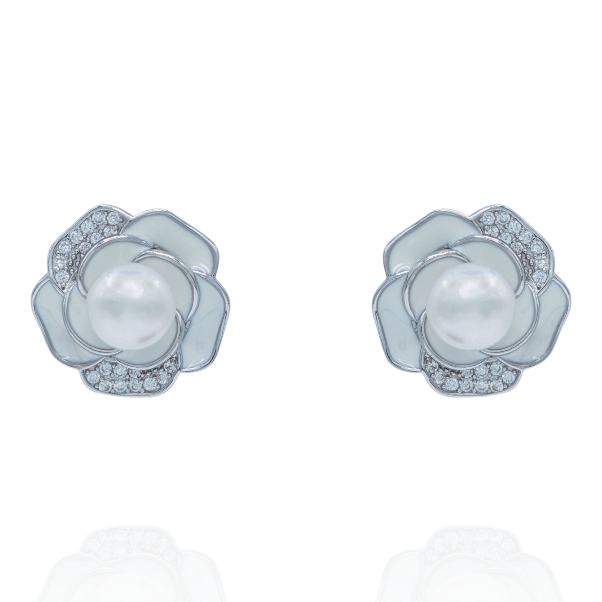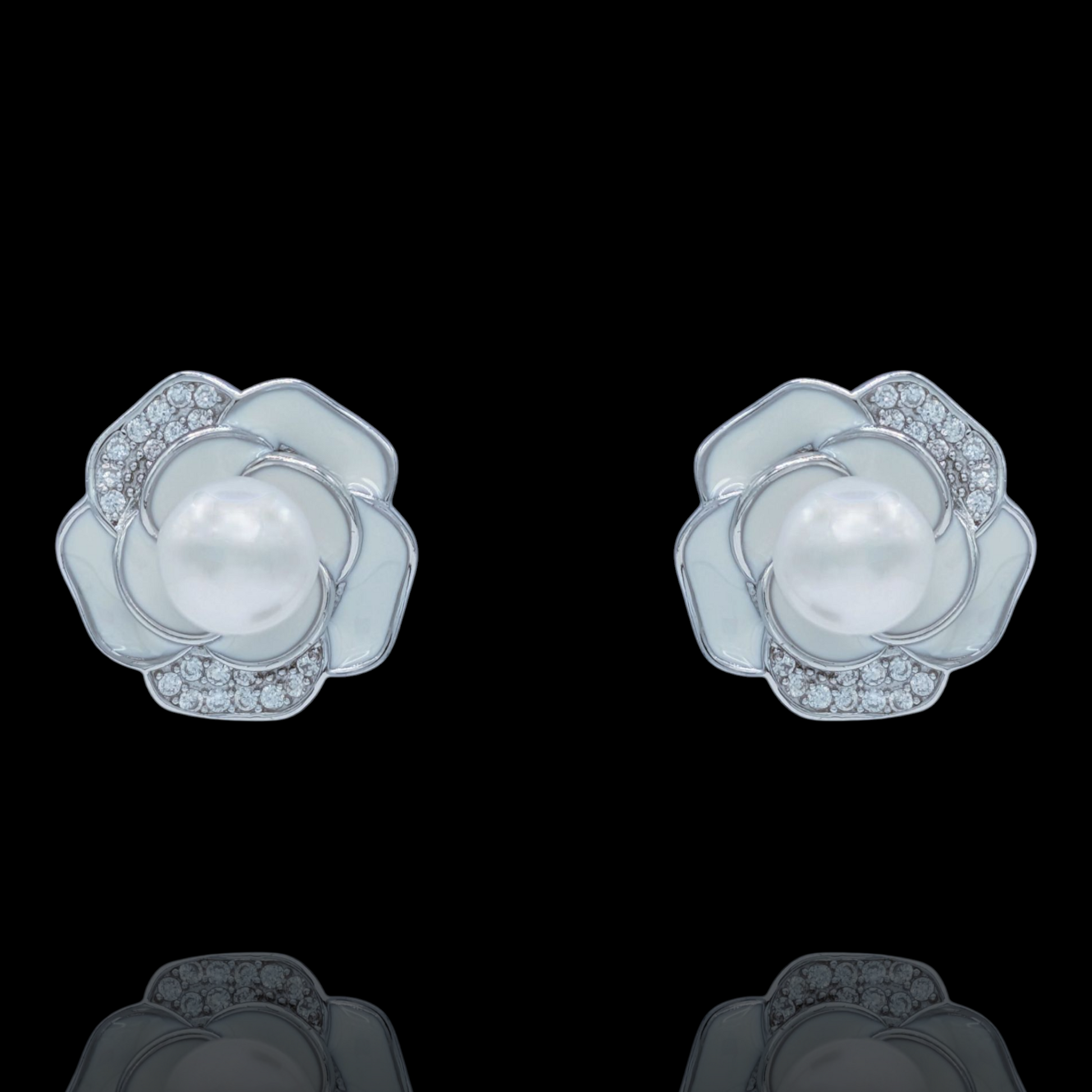 Illuminez votre visage avec ces charmantes boucles d'oreilles en argent 925 rhodié. Leur design floral élégant présente un cœur de perle délicate, entouré de pétales en émail blanc. Le luxe est souligné par des accents d'oxydes de zirconium qui apportent une brillance éblouissante. Montées sur un fermoir poussette sécurisé, ces puces d'oreilles sont faciles et confortables à porter. L'argent rhodié assure une durabilité exceptionnelle et une brillance durable qui résiste au ternissement. Parfaites pour un mariage, un cadeau d'anniversaire ou pour une touche de mode quotidienne raffinée, ces boucles d'oreilles incarnent l'élégance intemporelle. Offrez-vous la qualité et le style pour toutes les occasions !