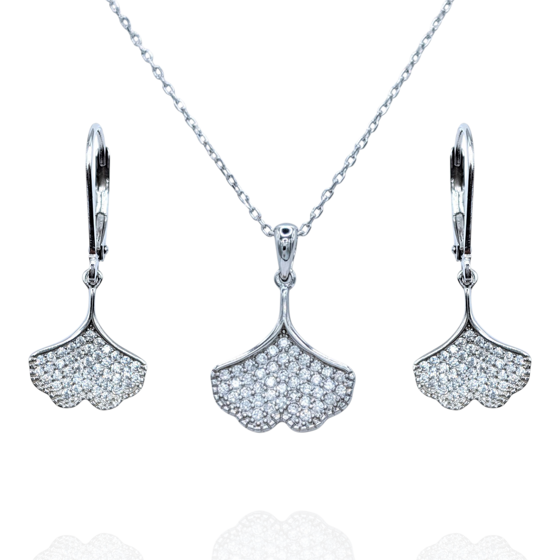 Parure Argent 925 Rhodié Ginkgo Biloba Oxyde de Zirconium Scintillant